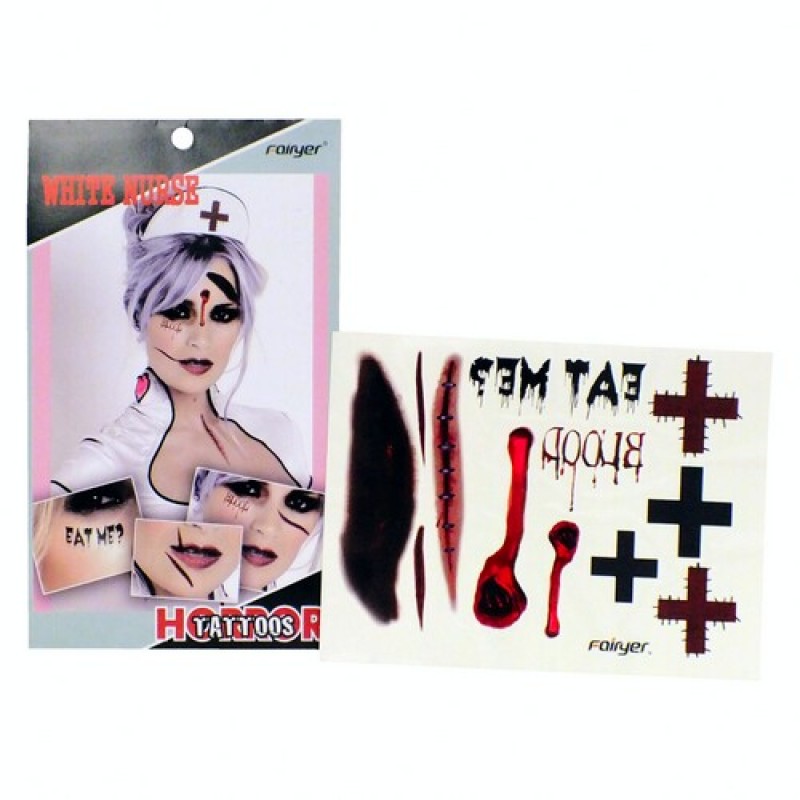 Мини набор временных карнавальных татуировок, которые переносятся с помощью воды. Подходящий быстрый боди-арт на праздник Хэллоуин.
