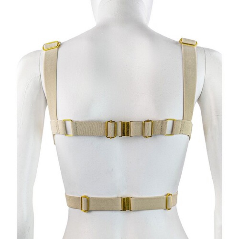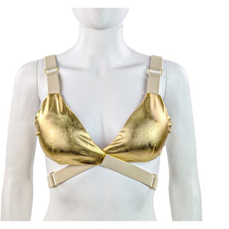 Стильнй золотистый топ-бра с регулируемыми ремешками и металическими деталями.