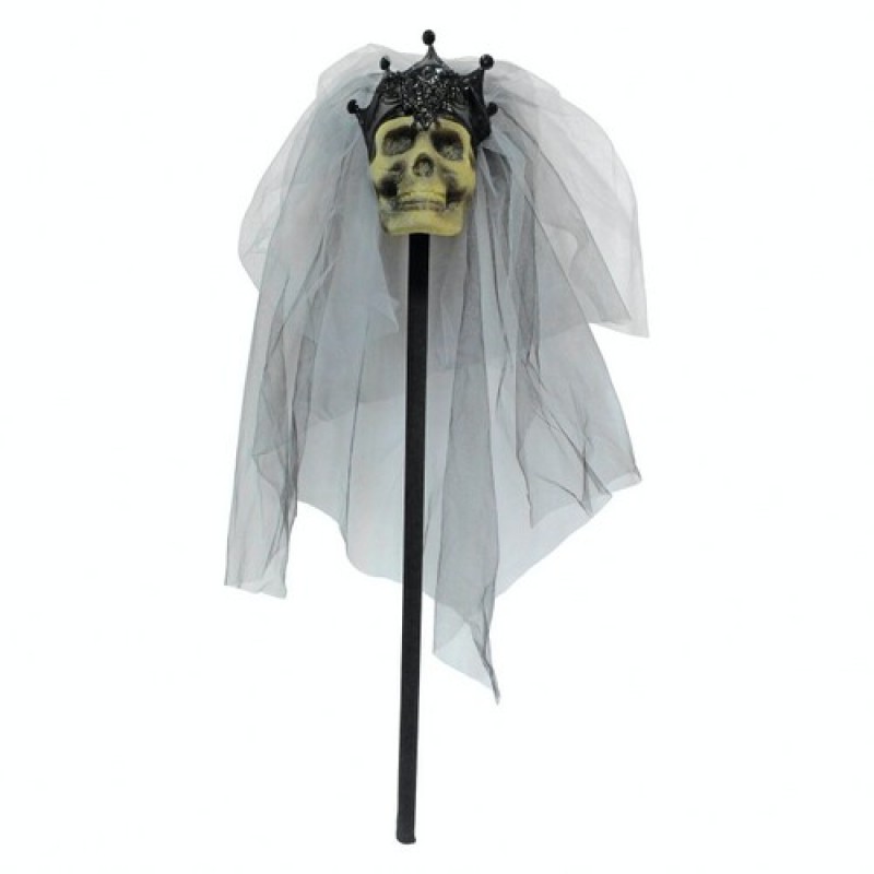 Трость (палка, скипетр) с черепом в короне с фатой - дополнение к карнавальному образу на Хэллоуин (Halloween): святая смерть Санта Муэрте (Santa Muerte)(муерте, муэртэ).