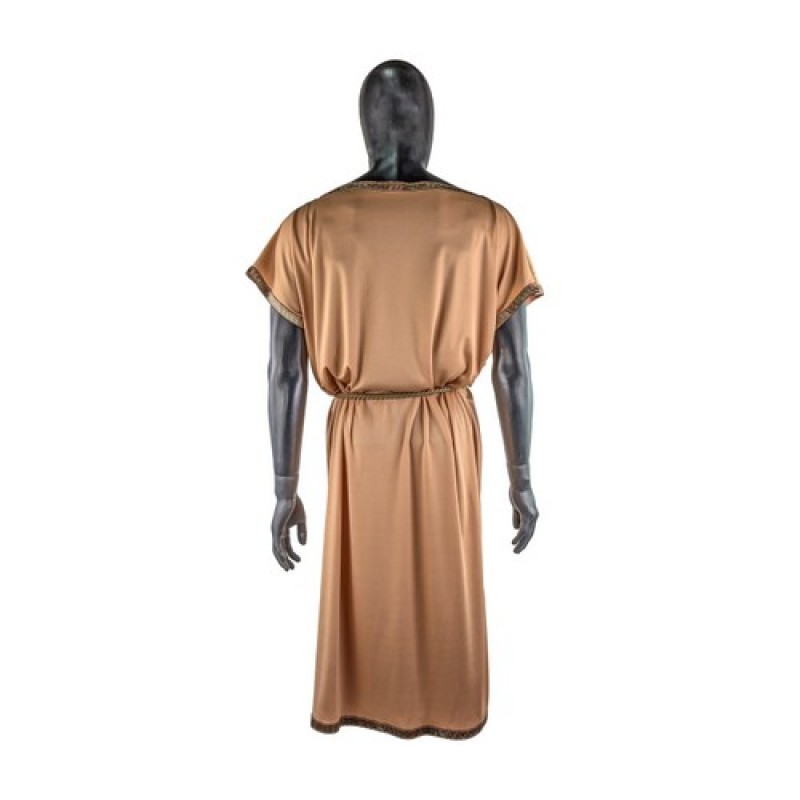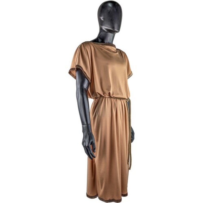 Греческая туника бежевого цвета, декорирована широкой тесьмой с греческим орнаментом.