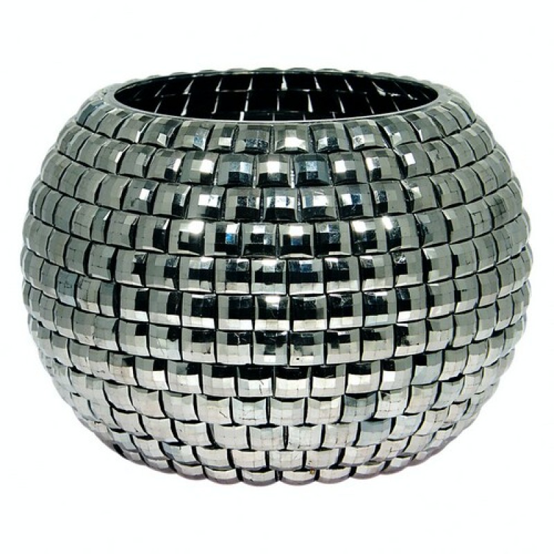 Ваза покрыта яркими серебристыми пластиковыми стразами.