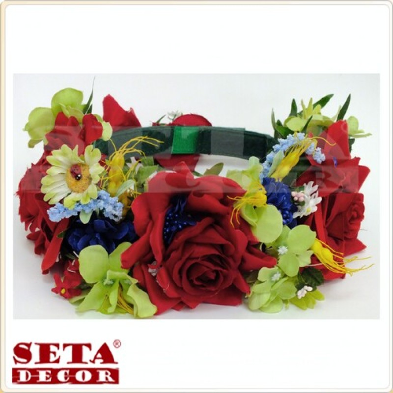 Яркий венок из летних цветов на тканевой ленте. Застёгивается с помощью липучки.