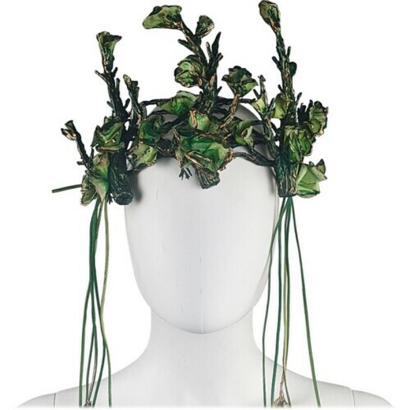 Оригинальный аксессуар в виде зеленого венка, декорированного необычными цветами и нитями. Подойдёт для дополнения карнавального образа на Новый Год, Рождество, День Святого Патрика.