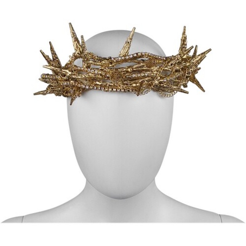 Эффектный золотистый терновый венок, декорирован металическими шипами, стразовой лентой и цепочкой.