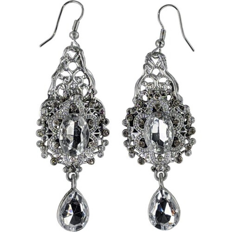 Оригінальні сережки, прикрашені блискучими сріблястими вензелями та камінням.