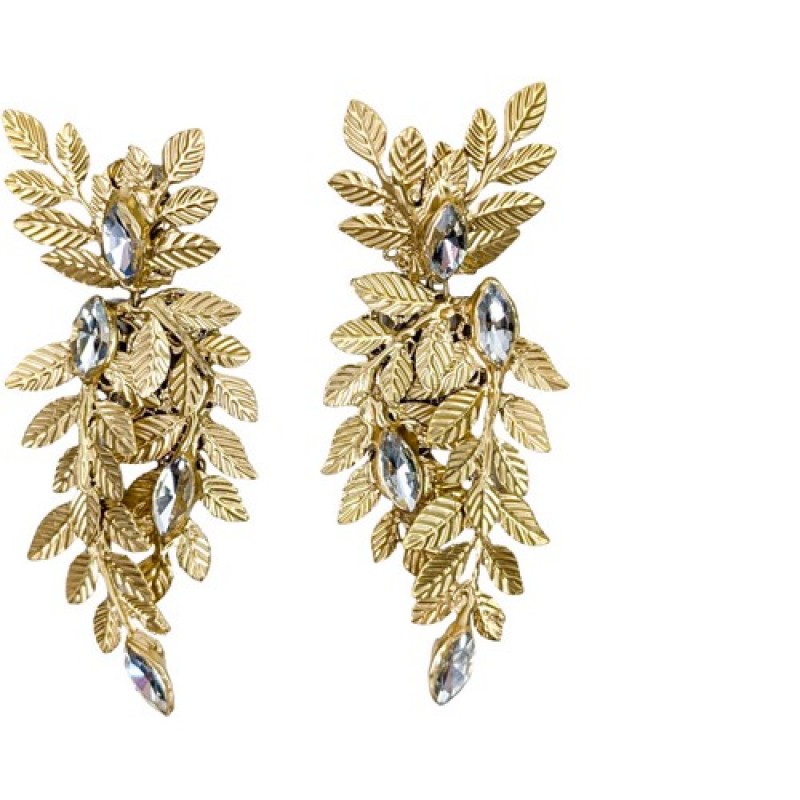 Оригінальні сережки у вигляді гілочок з листочками декоровані камінням.