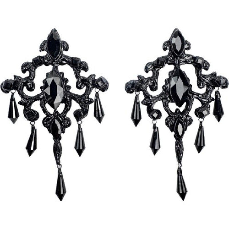 Розкішні сережки у вінтажному стилі з великим центральним каменем, прикрашені підвісками у вигляді кристаликів.