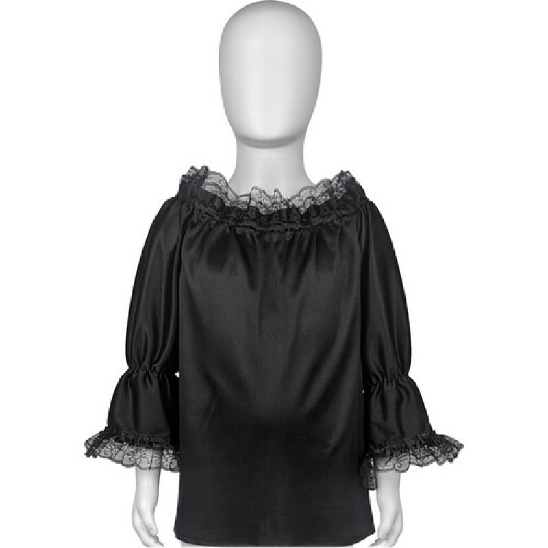Сорочка з відкритими плечима, прикрашена ніжним мереживом.