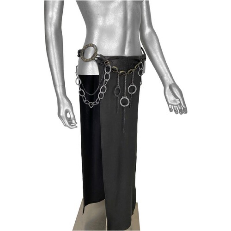 Оригінальна спідниця з широкими розрізами з обох боків, декорована металевими підвісками, ідеальне доповнення до містичного образу.