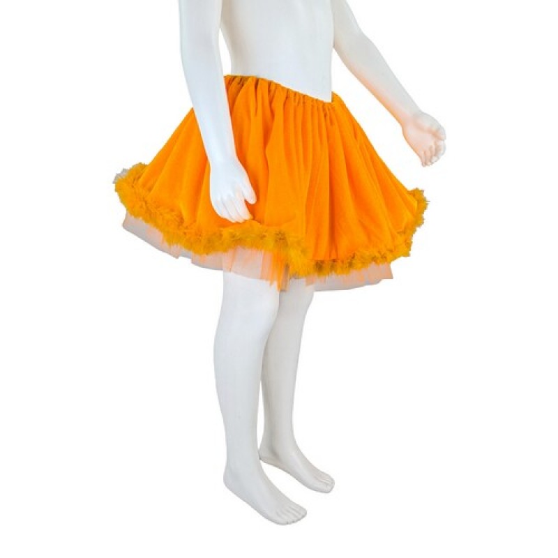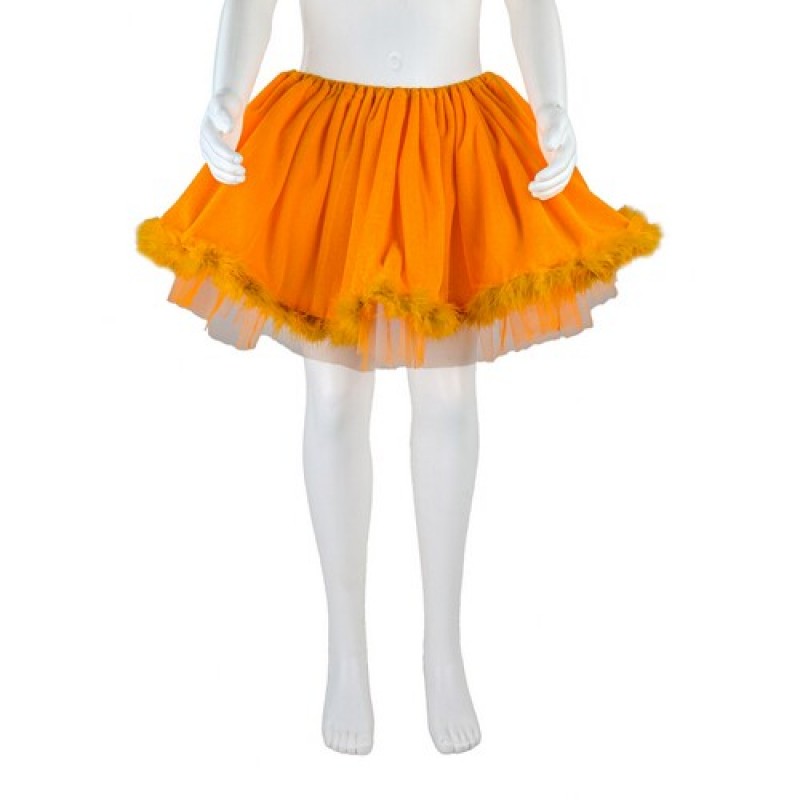 Карнавальна дитяча спідничка помаранчевого кольору з пуховим кантом. Елемент одягу для костюма лисички.