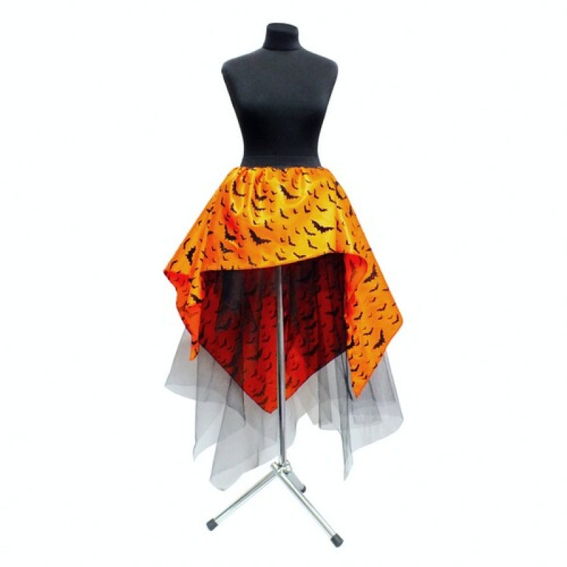 Оригінальна помаранчева спідниця із зображенням у вигляді чорних кажанів.