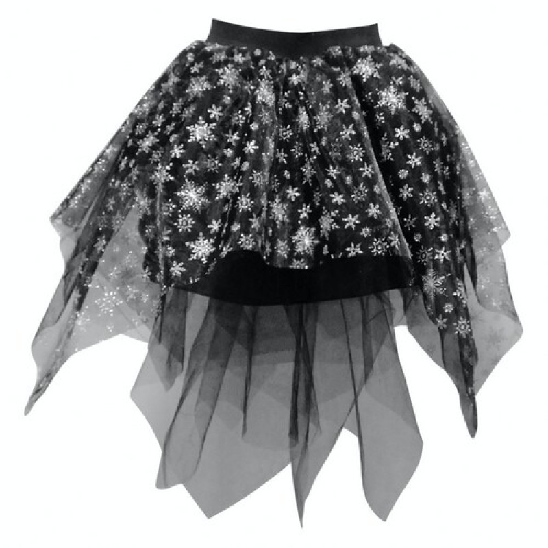 Пишна фатинова спідниця з сріблястими сніжинками на Новий рік.