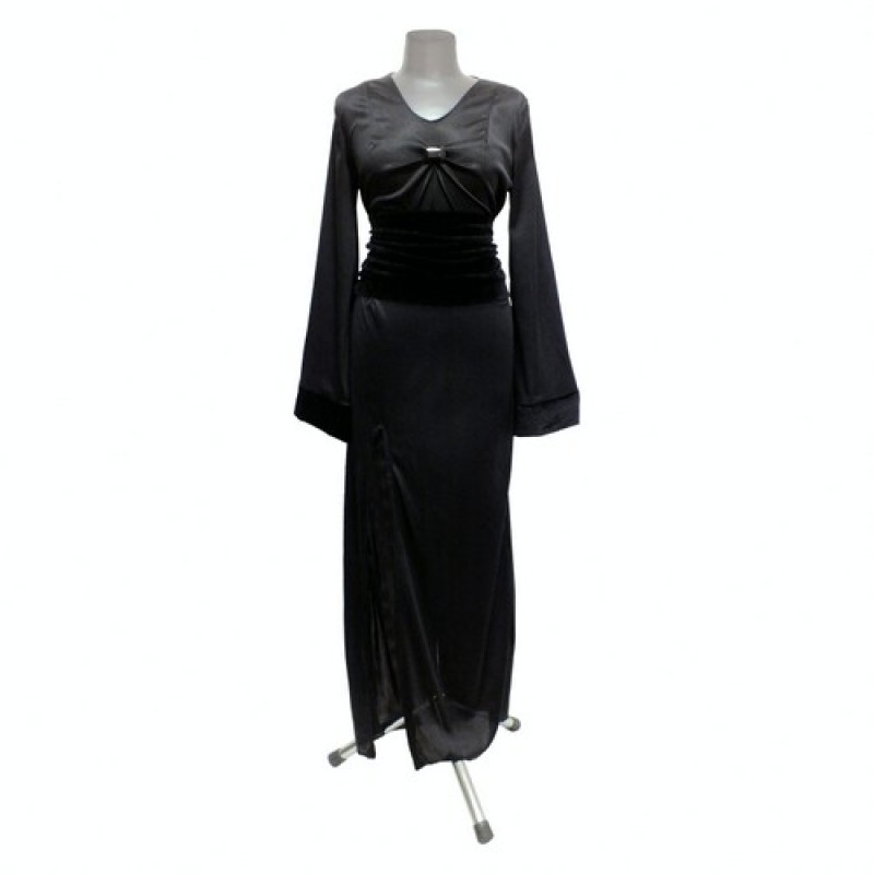 Карнавальне чорне плаття, яке одягається через голову (без застібок). У комплект входить брошка, за допомогою якої можна зробити більше або менше виточки на грудях. Також є широкий оксамитовий пояс з вузькими кінцями.