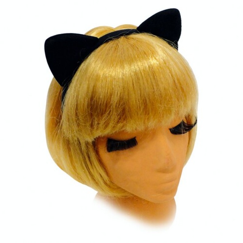 Карнавальні плюшеві вушка чорного кольору на обідку для грайливого образу кішки.